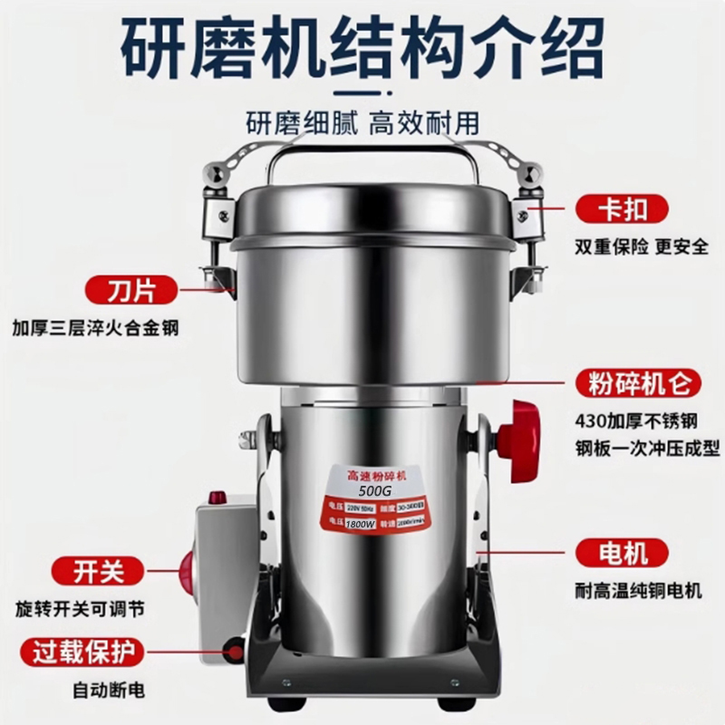 刀片為合金鋼材質(zhì),功率大制樣粒度均勻,樣品粉碎粒度可達30-300目。